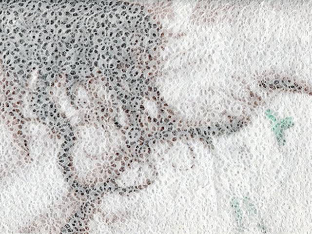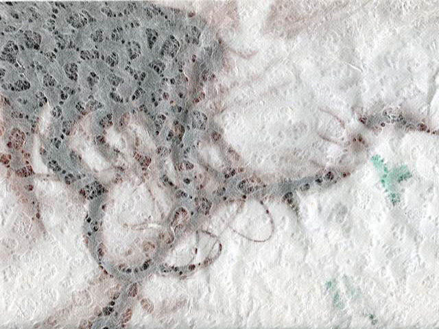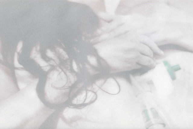 En partant de photographie de réanimation, j'ai élaboré un travail spécifique, que j'ai disposé dans l'espace de façon à créer un rythme, comme celui des bips successifs. Par la répétition de cette même photographie recouverte de différentes épaisseurs de calque qui la rendent plus ou moins invisible, indicible, j'ai voulu montrer, à travers ces images qui s'effacent en rythme, le temps qui passe, la vie qui s'éloigne, jusqu'au moment des derniers bips des machines. J'ai travaillé les photographies sur calque, avec différents papiers calque et papiers matière blancs qui ne sont pas sans rappeler les draps et les linceuls.